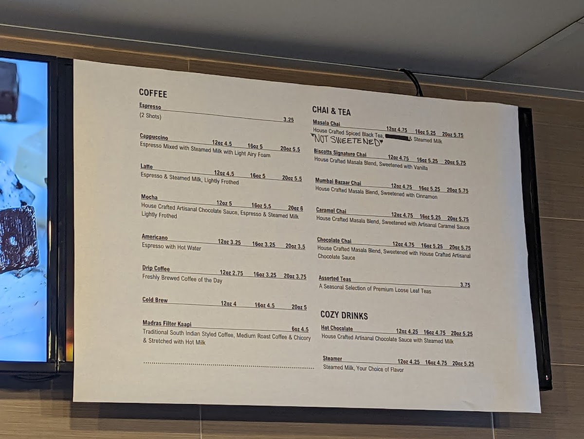 Welcome to Biscotts Bakery & Café, a delightful haven nestled in South Jordan, UT. The moment you step inside, the inviting aroma of freshly baked goods envelops you. Their menu celebrates a fusion of flavors, featuring handcrafted chai & tea that range from the spicy warmth of Masala Chai to the sweet whispers of Caramel. Priced at just $5.94, each cup offers a harmonious blend of tradition and comfort.
